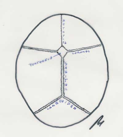 El cierre normal de las suturas se produce, para la sutura metópica, antes del nacimiento; la fontanela posterior se cierra a los 3 meses y la anterior alrededor de los 18 meses. Todas las suturas comienzan a calcificarse a partir de los 8 años y después de los 12 años no se separan aunque exista un cuadro de hipertensión intracraneal.