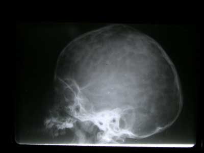 Fig. 10.- RX con signos de Hipertensión intracranea. Se Observan impresiones digitiformes